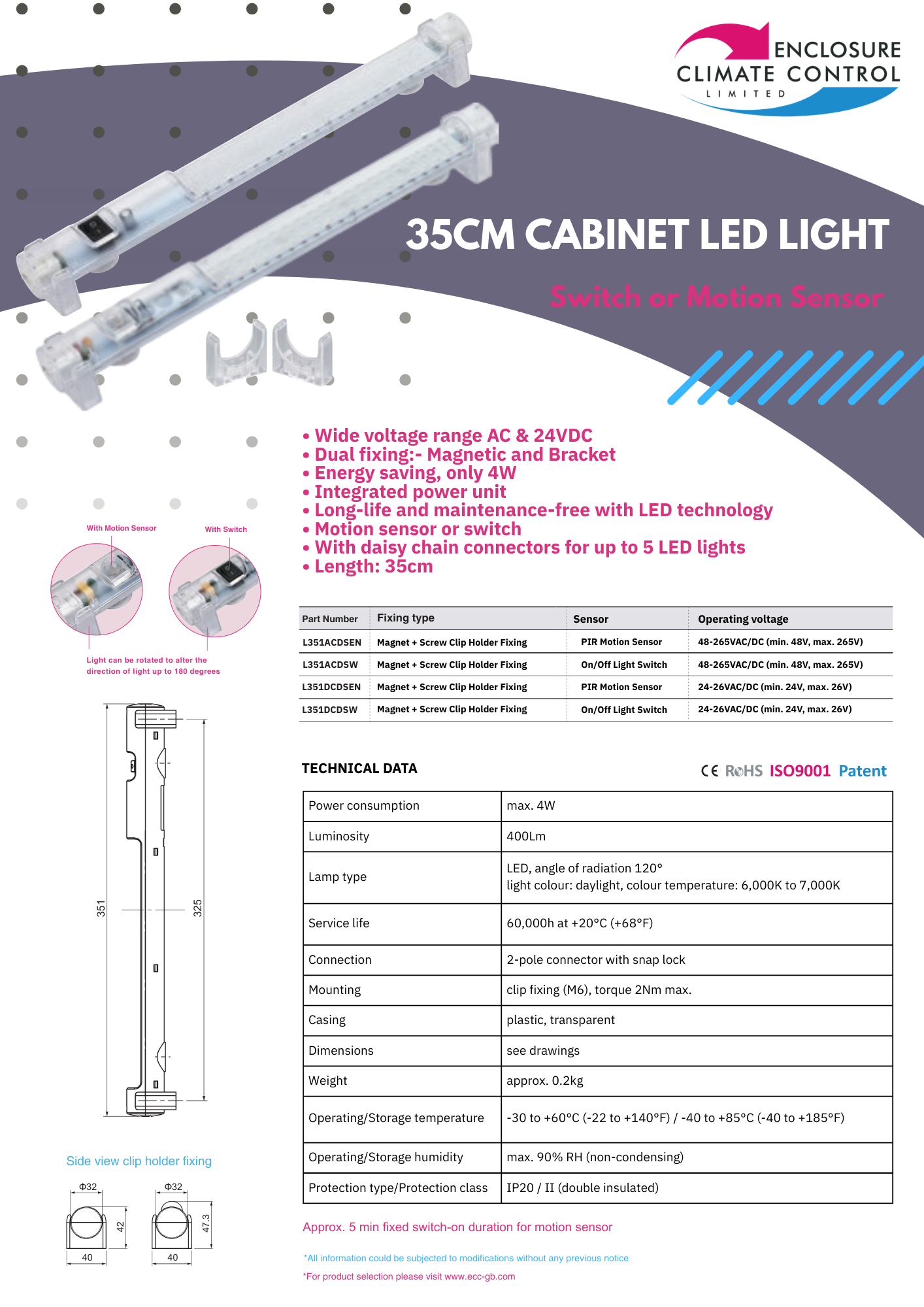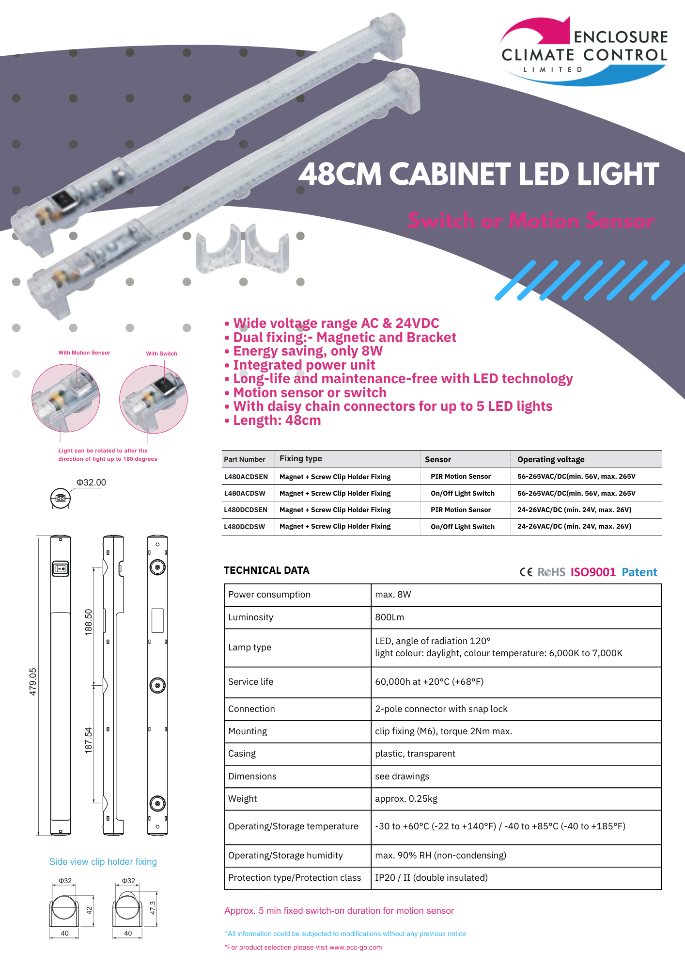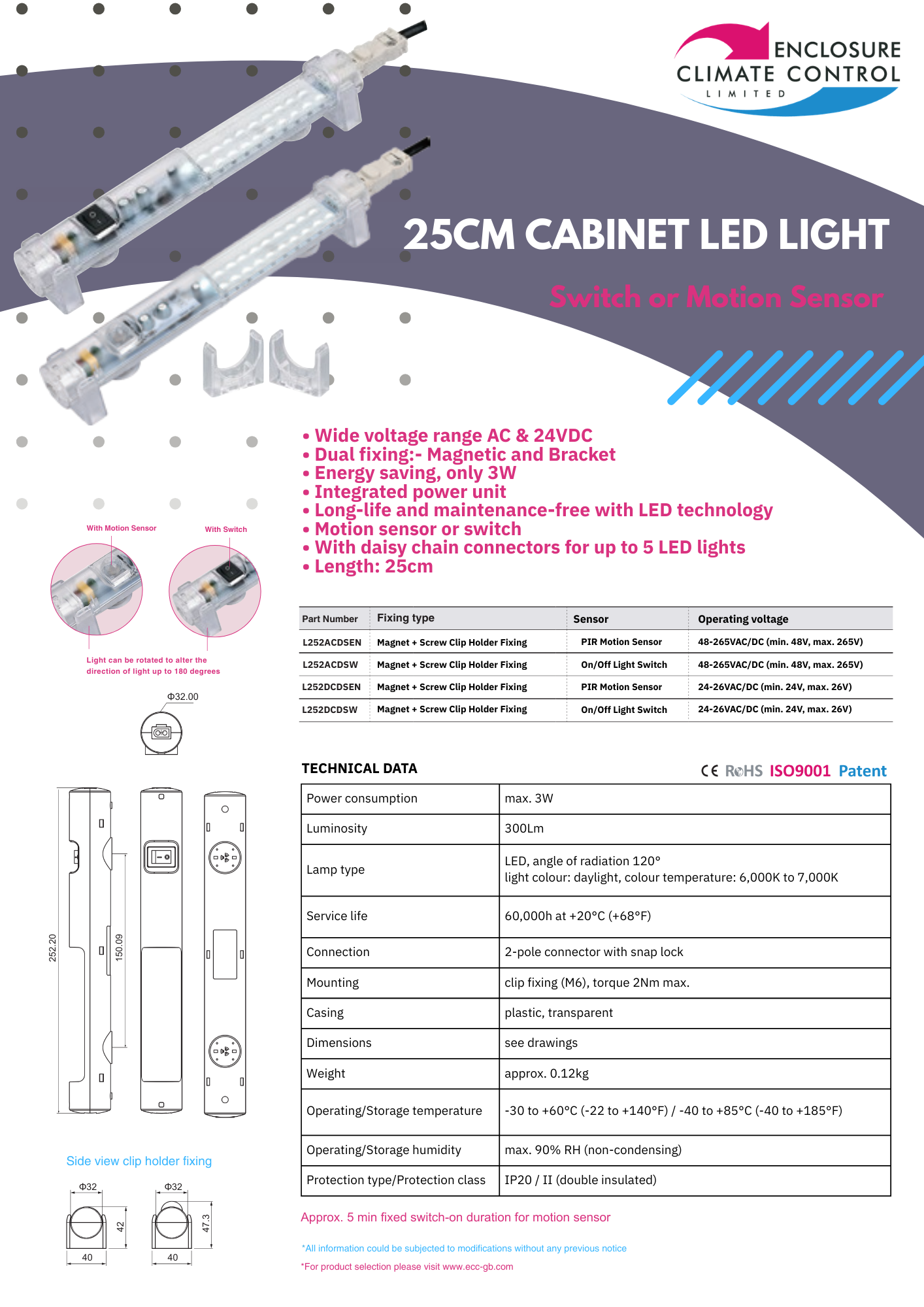 Our range of lights can be used in all types of cabinets or panels, even where space is extremely limited. With magnetic &/or backet fastenings, the integrated power supply and the locking input and output plugs make installation quick, flexible and safe. Up to 5 lights can be connected in series. Available with switch or sensors. LED technology guarantees a very long lamp lifetime.